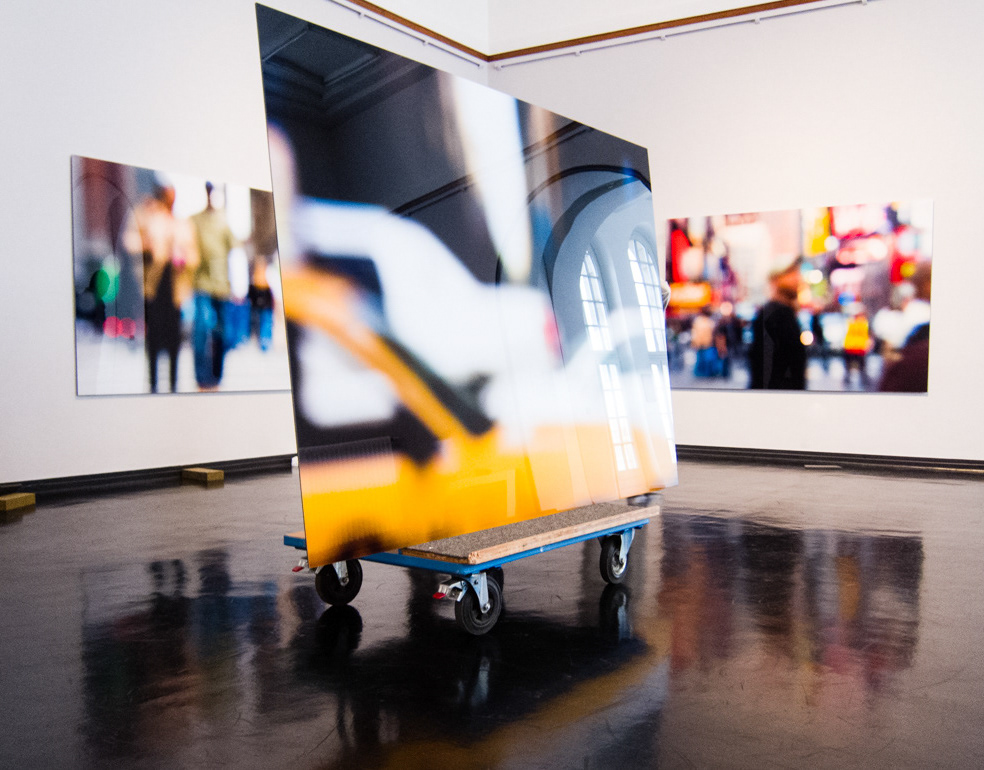 Die pulsierende Metropole New York inspirierte Nicole Hollmann dazu, die dreidimensionale Realität mit ihren akustischen und olfaktorischen Reizen durch das Medium der Fotografie in die Zweidimensionalität zu transformieren. Dabei entstanden großformatige Fotografien an der Schwelle zur Malerei. Hollmann verzichtete auf die präzise Abbildung und genaue Linienführung zu Gunsten von Form und - vor allem - Farbe.